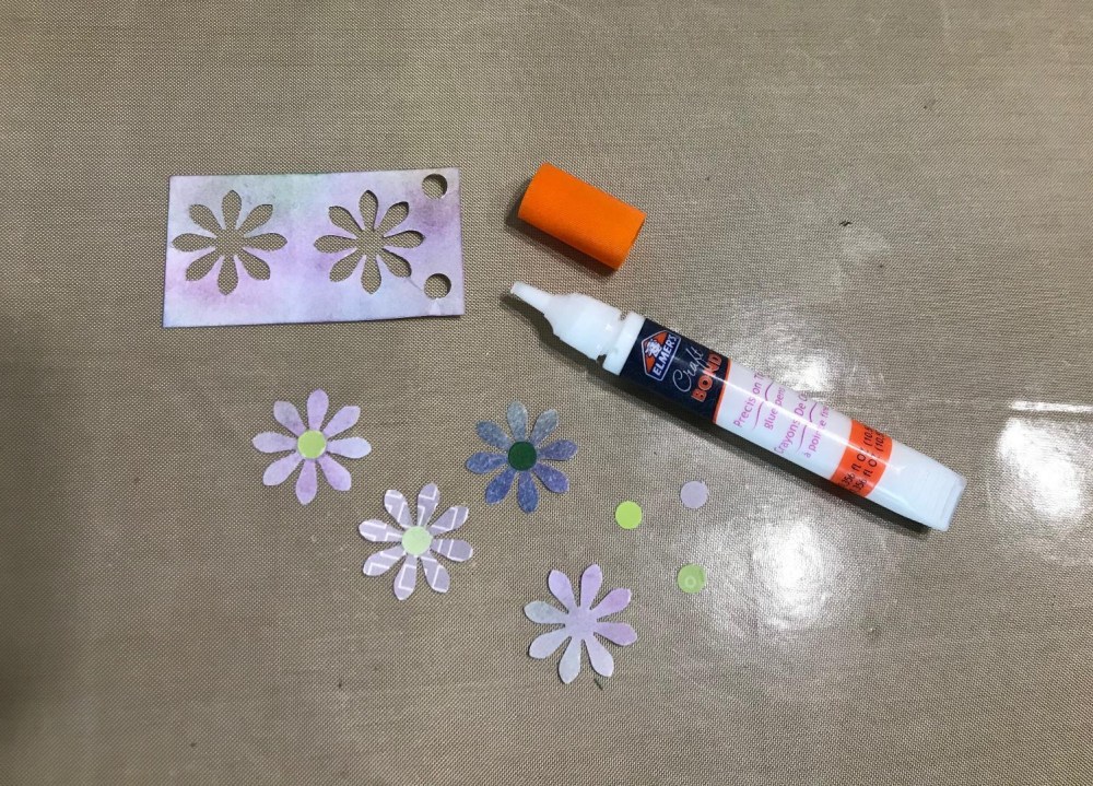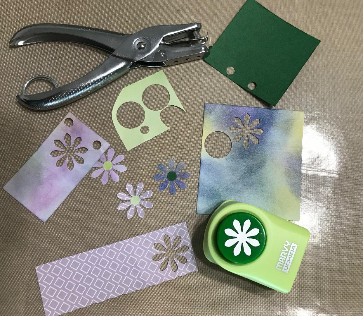 I used a Marvy daisy punch and a standard size hole punch to create the embellishments. I found my flower punch at a thrift store, but this one is the same brand, shape, and size.