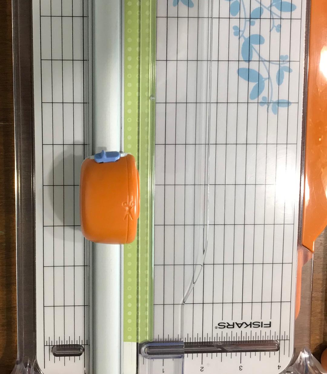Next I cut three different styles of green paper into strips using a paper trimmer.
