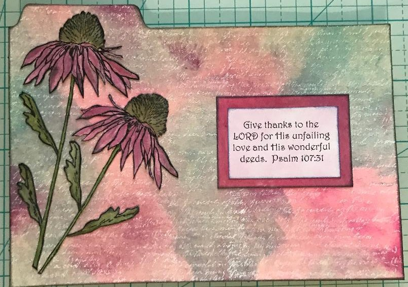 The Bible verse was simply printed out on copy paper and mounted on card stock. I inked the edges of the verse cards and the index card with Tim Holtz Distress Ink in Black Soot. It always amazes me how much a project pops when the edges are darkened.