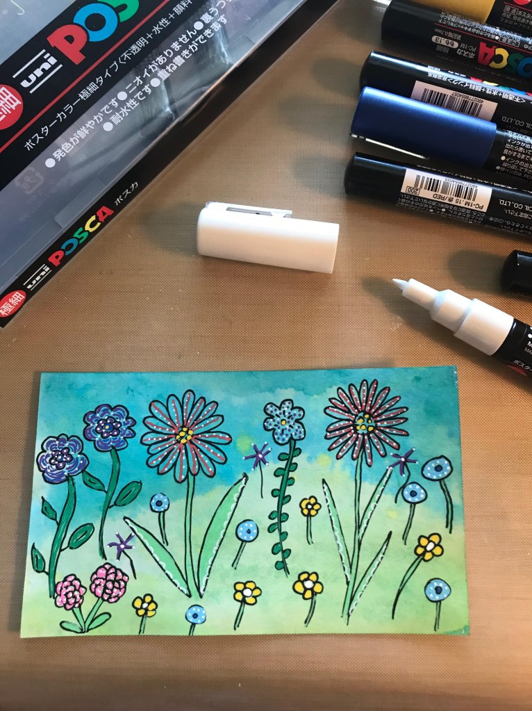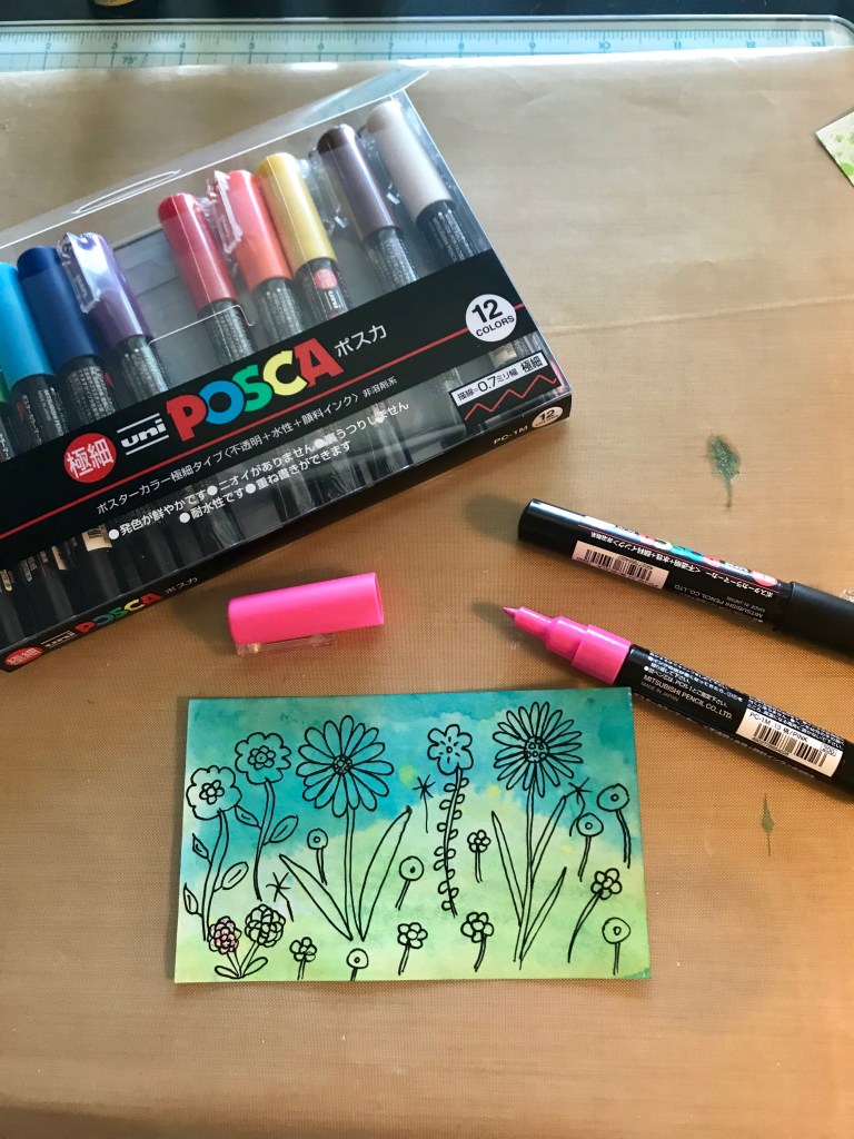 The fun part is adding the color and the designs with the Posca pens! I use the extra fine line for this kind of drawing!