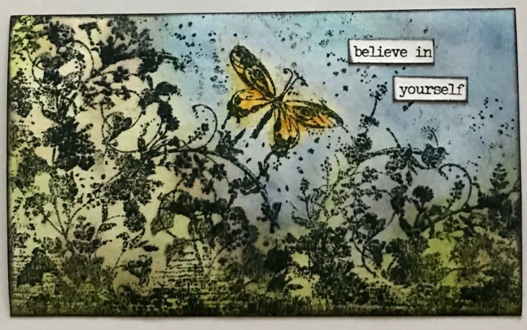 Today is the final day of my ICAD Challenge week, and once again I’m revisiting the flower-and-butterfly theme.