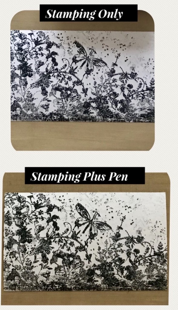 I should note that I did use my Pigma Micron Pen to darken some areas of the stamped image, and to fill in some broken lines. You can see this especially on the butterfly wing, which didn’t stamp as clearly as it should have.