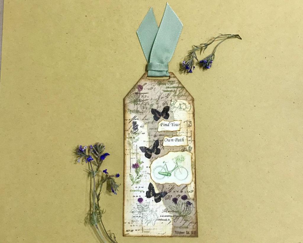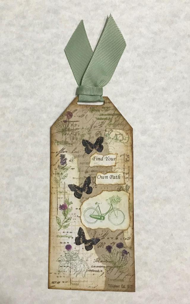 Another art tag today, this one with a vintage botanical theme. I truly love making art tags, and the sentiment is a reminder to give myself permission to explore art in my own way. In this case it starts with a tag cut from a piece of advertising junk mail covered with a piece of paper from a Recollections 6×6 paper pad.