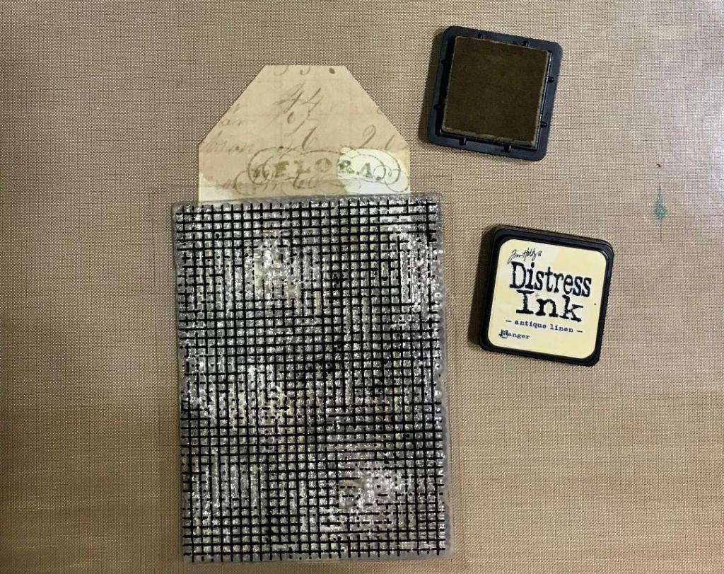 I also used a grungy grid stamp to give some additional depth to the tag, but I used Distress Ink in Antique Linen to keep it lightly in the background so it wouldn’t overwhelm the other elements.