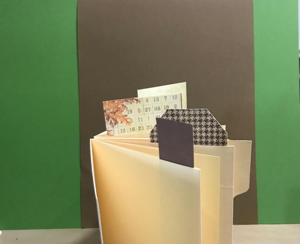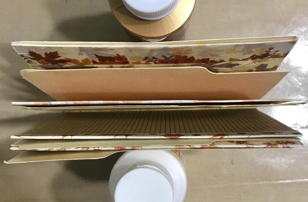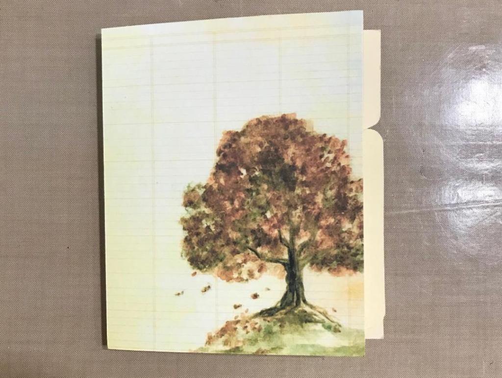 I’m currently working on a file folder journal to use this fall. Above you can see the cover after the file folders have been cut down and glued together.