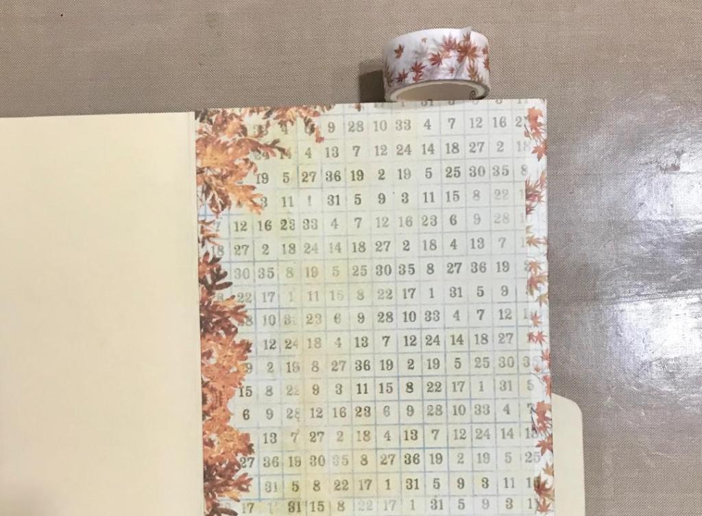 After I glued the papers down, I edged them with autumn-patterned washi tape to finish the edges cleanly.