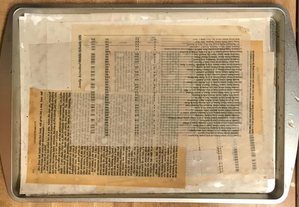 I had some strongly brewed coffee waiting in the refrigerator, so I just poured it over the papers, lifting and turning them to make sure they were evenly coated.