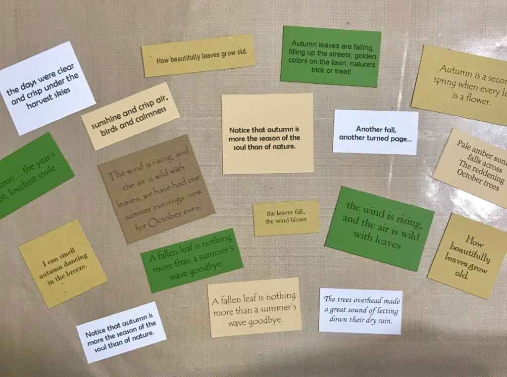 I typed the quotes into a table in Microsoft Word in different fonts and sizes, then printed them onto cardstock. In hindsight, I should have left more room in between the quotes so I could tear them apart rather than cutting them to give them a more rustic look. I was able to tear some of them, but not all of them. You can download my page of quotes and edit them as you choose.