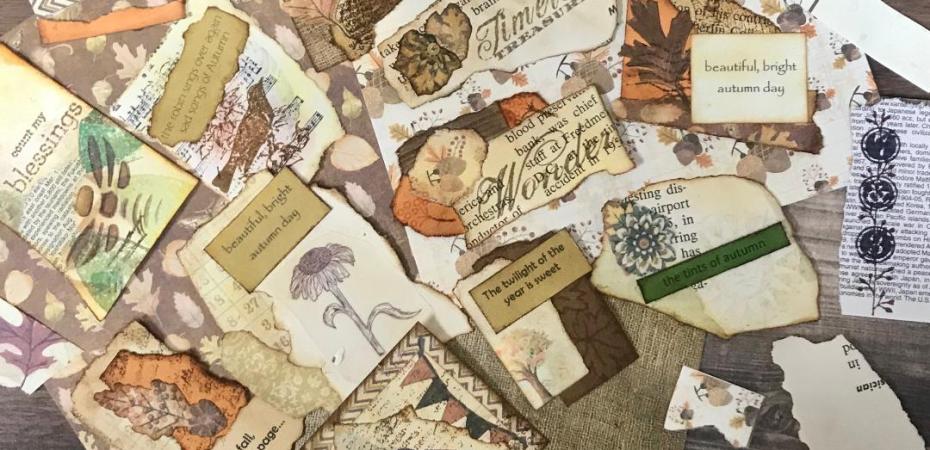 I had fun last weekend making some ephemera for my autumn file folder journal! I used some of my autumn patterned paper, some stamps and stencils and distress ink, old book pages, stickers, fall colors of card stock, and some quotes about autumn.